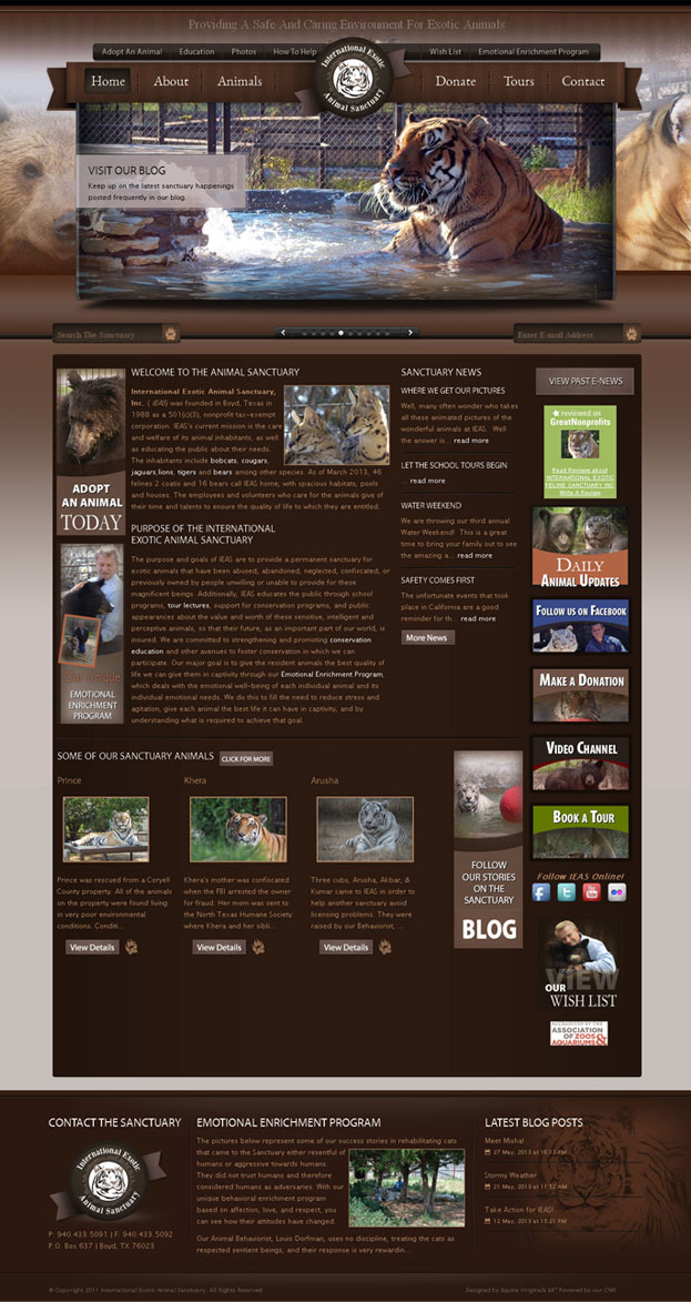 International Exotic Animal Sanctuary, Inc. (IEAS) was founded in Boyd, Texas in 1988 as a 501(c)(3), nonprofit tax-exempt corporation. IEAS’s current mission is the care and welfare of its animal inhabitants, as well as educating the public about their needs. The inhabitants include bobcats, cougars, jaguars, lions, tigers, and bears among other species. The employees and volunteers who care for the animals give of their time and talents to ensure the quality of life to which they are entitled.